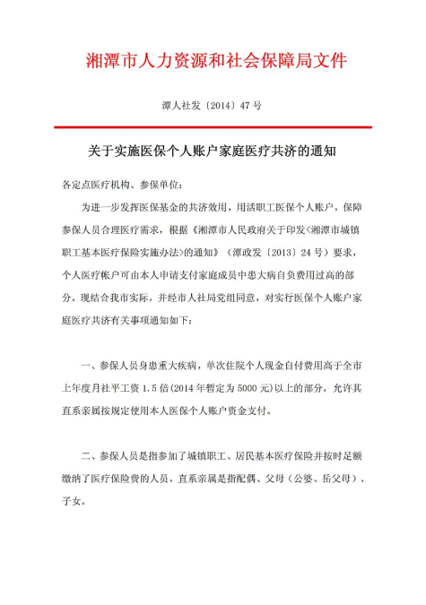 關(guān)于實(shí)施醫(yī)保個(gè)人賬戶(hù)家庭醫(yī)療共濟(jì)的通知
