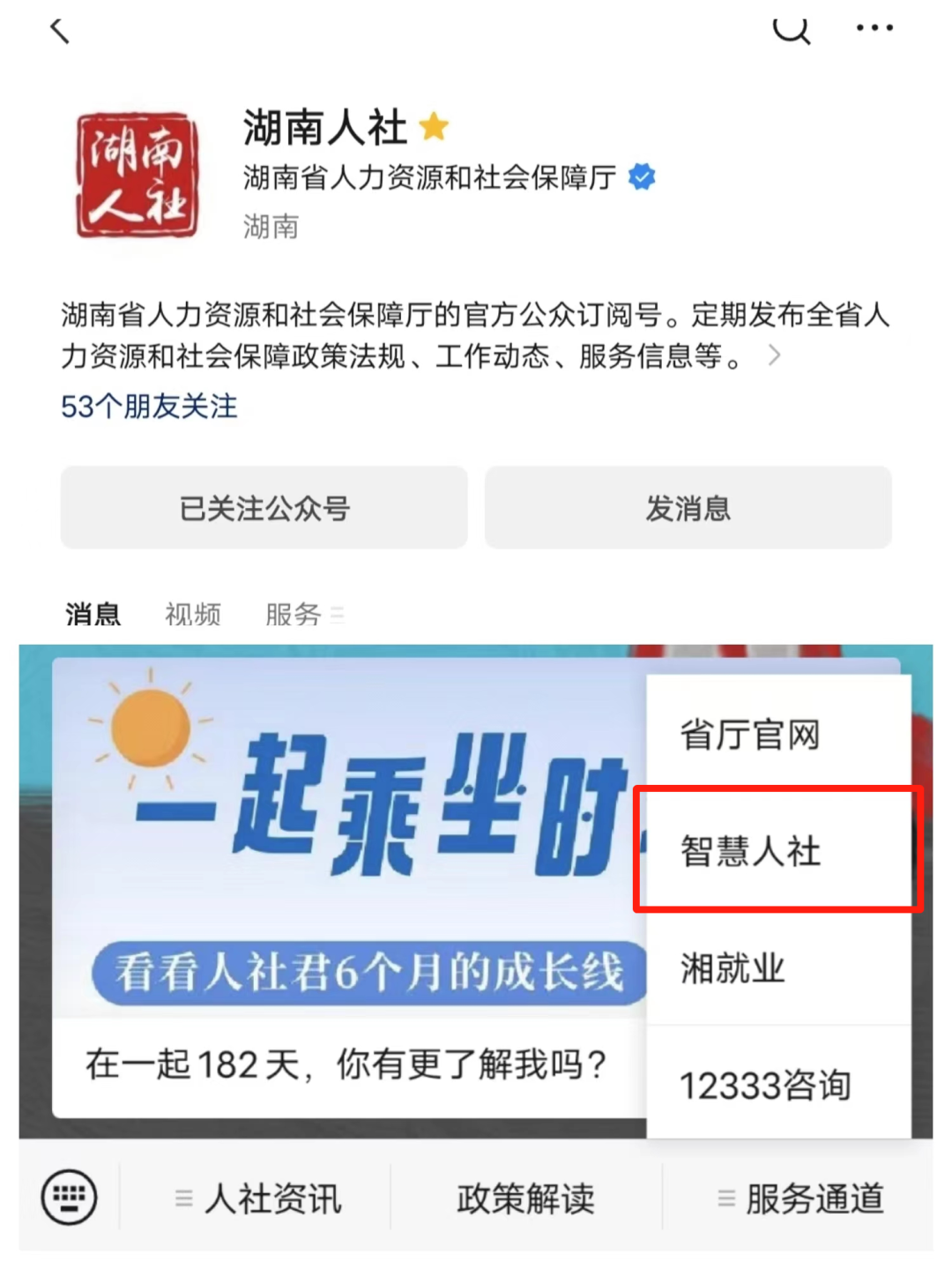 2、關(guān)注“湖南人社”“智慧人社”微信公眾號(hào),點(diǎn)擊【服務(wù)通道】→【智慧人社】→【更多】→【社會(huì)保險(xiǎn)-失業(yè)保險(xiǎn)金申領(lǐng)】→【失業(yè)保險(xiǎn)金申領(lǐng)】辦理;
